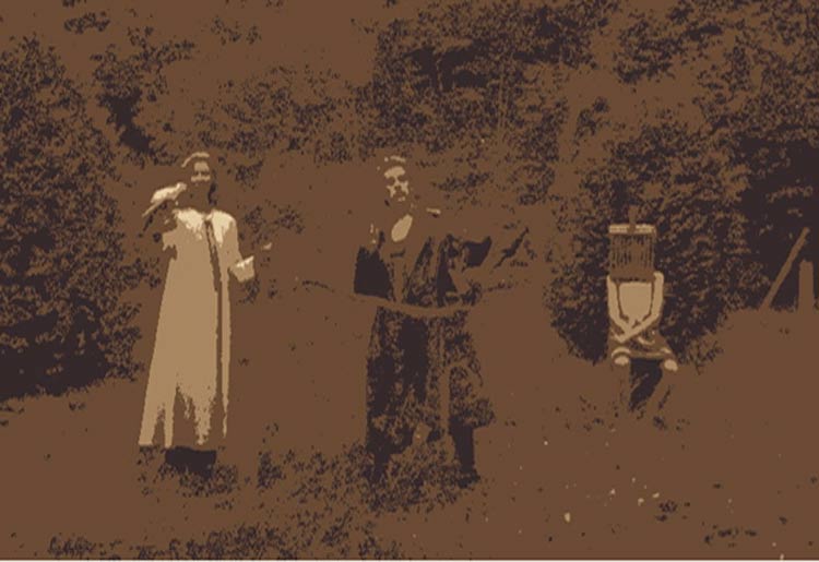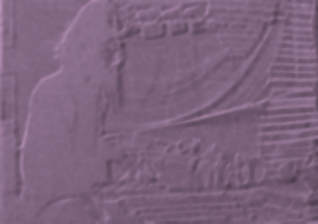 Simons artifact: temple stone carving of bearded musician, circa late 1970s San Francisco