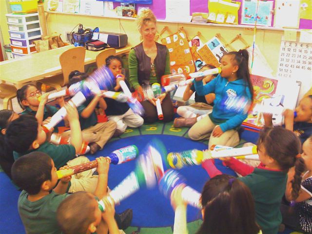 Students build an orchestra of homemade instruments and learn to play, compose, arrange and record their own original music. They also have an opportunity to play and record on the Theremin, an electronic instrument invented in the 1920's which is played by motion and proximity. The classroom becomes a recording studio. Students then design and create their own CD labels and covers. This workshop culminates in a "CD Release Party" and live student concert featuring selected compositions from the CD. Afterwards students each receive a CD and everyone gets to take their instruments home.